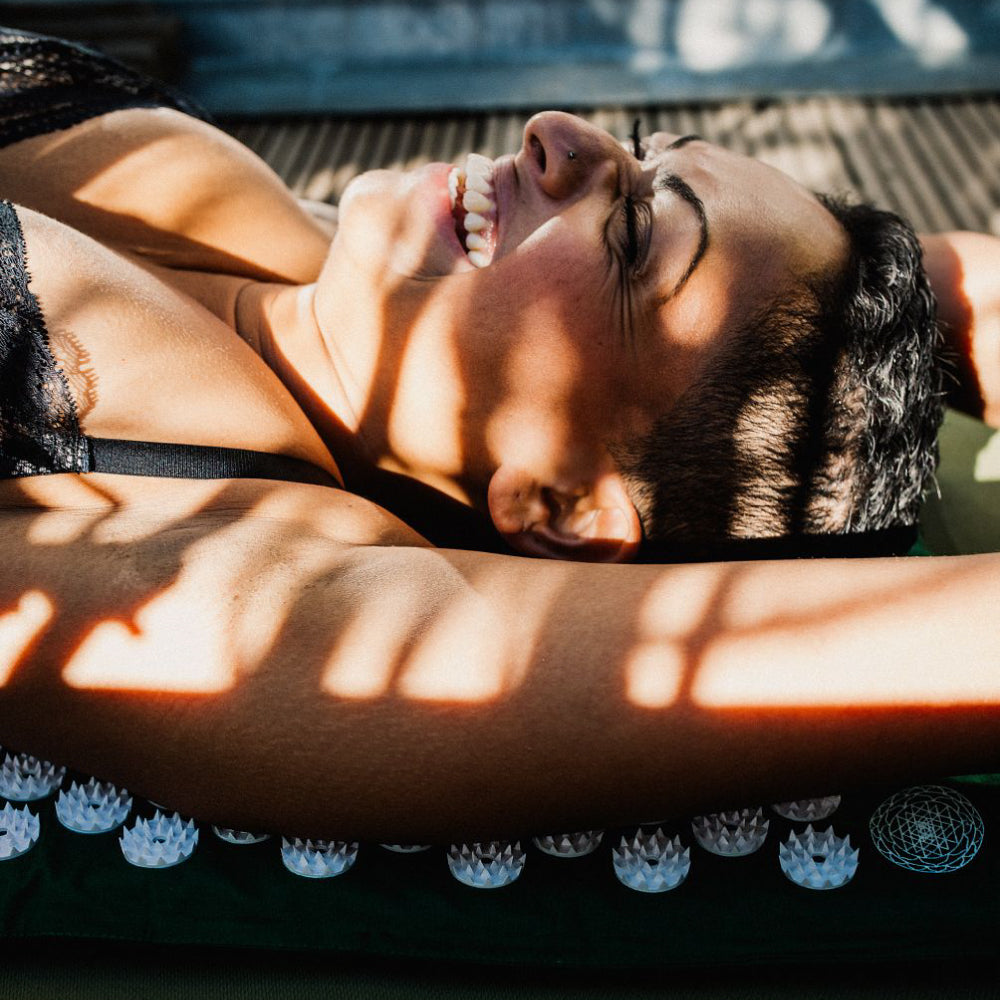 横になるのが最も簡単な使い方です。ベッドや床に寝て、背中、首、脚などの緊張している部分をターゲットにします。素肌で20分以上使うのが最も効果的ですが、使い初めの際、数千のスパイクの感覚に慣れるまでは、薄手のTシャツを着てもかまいません。タイマーをセットして、リラックスしながら使用するのがおすすめです。