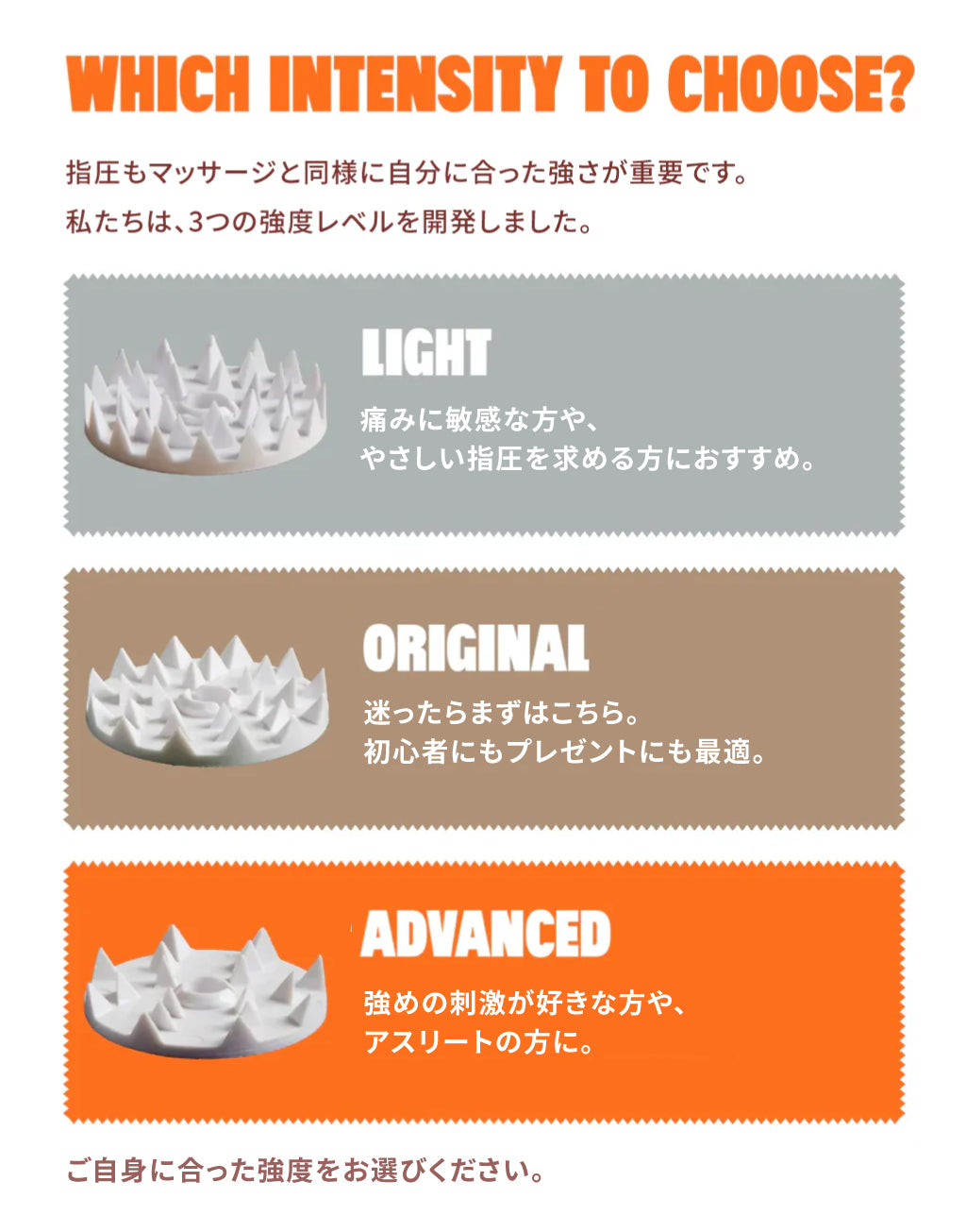 シャクティピローは、首と肩に的を絞って設計されています。まるで就寝用の枕のように首の下に快適に収まり、穏やかで効果的な圧力がかかります。各ピローはオリジナルのストレングス スパイクを使用しており、単独で使用することも、シャクティマットと組み合わせて使用することもできます。