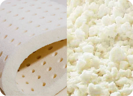 マットは、オーガニック素材で弾力があり、やわらかく通気性も抜群。横になるのにぴったり。ピローは、細かく裁断され、ふんわりとした心地よさと自在に形を変えられる柔軟性を兼ね備えています。